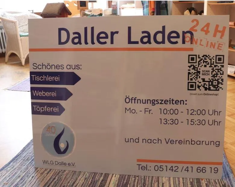 In unserem neu gestalteten Daller Laden könnt ihr nach Herzenslust unsere hochwertigen, handgefertigten Produkte aus allen Werkstätten erwerben.